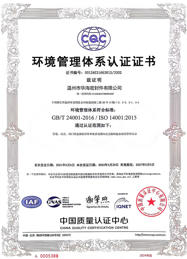 環境管理體系認證證書                                                           環境管理體系認證證書
