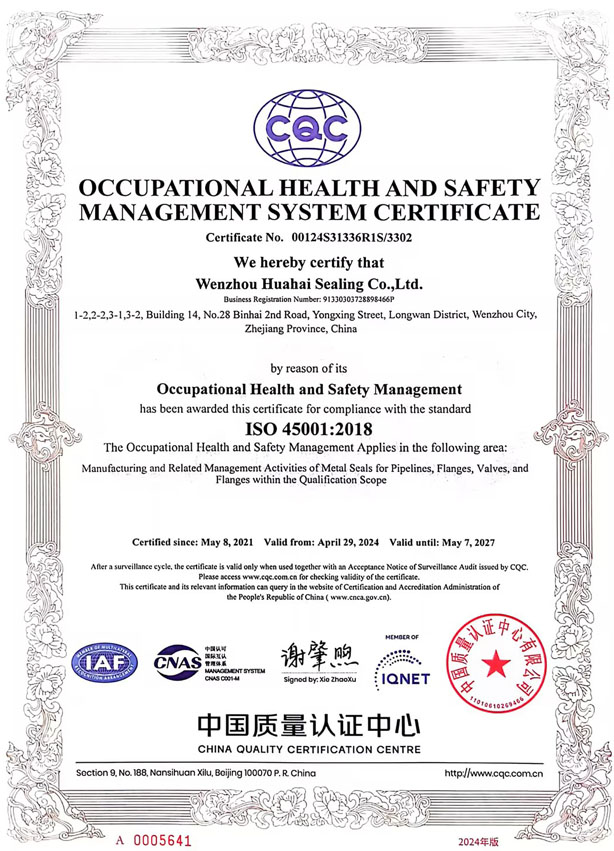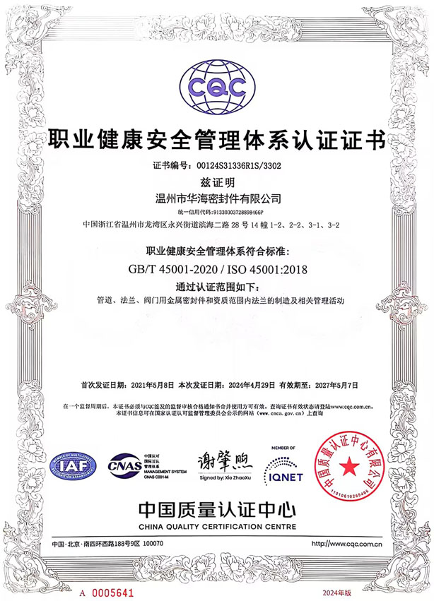 職業健康安全管理體系認證證書                                              職業健康安全管理體系認證證書